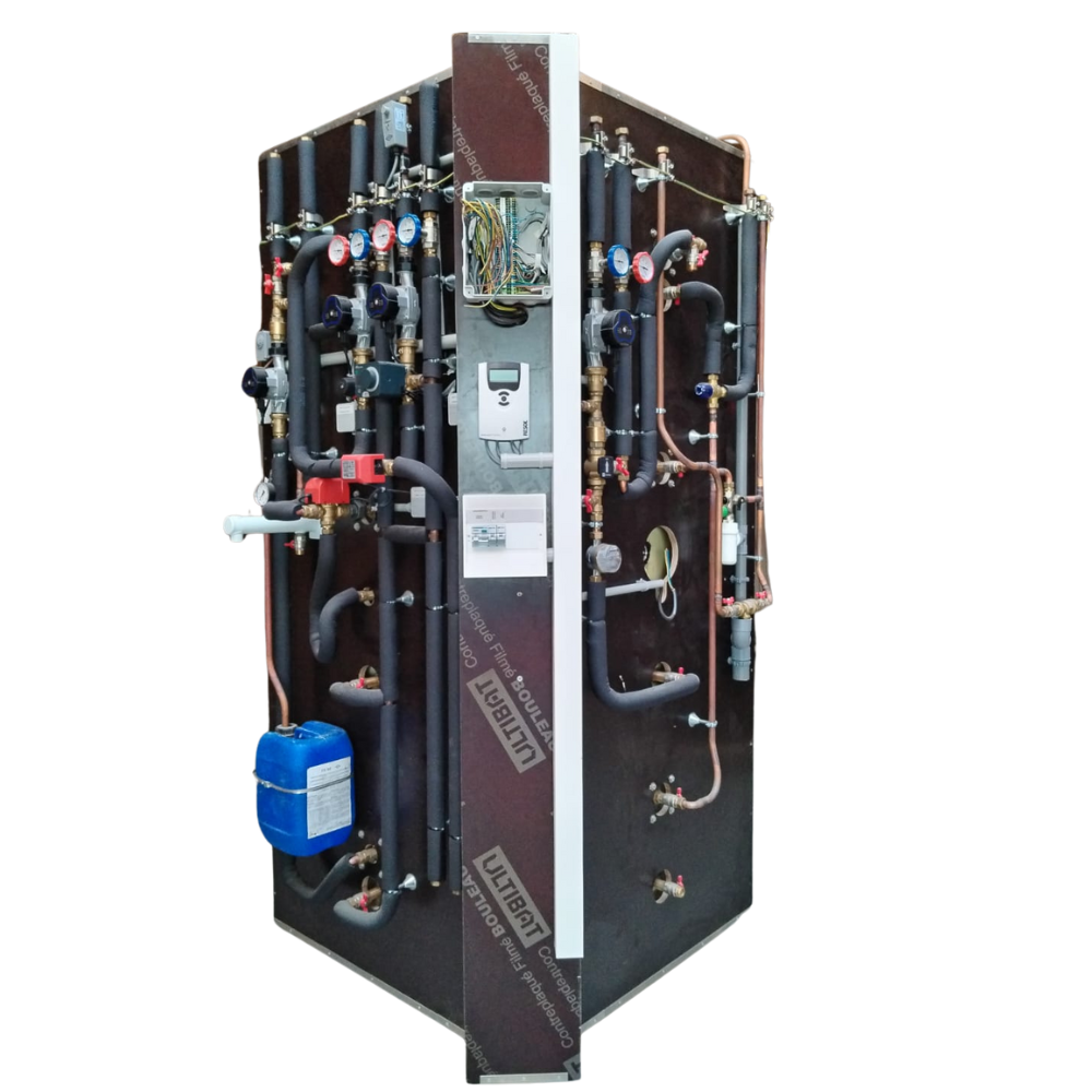 Conçu avec des composants professionnels, le bloc énergie AEZEO est compatible avec tous les circuits hydrauliques (planchers, radiateurs, murs chauffants) et peut accueillir ultérieurement des capteurs solaires supplémentaires.